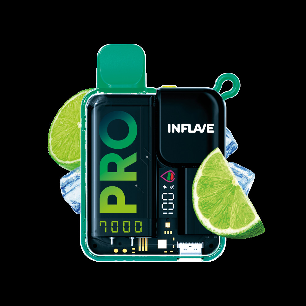 Электронная сигарета Inflave Pro 7000 затяжек Свежий Лайм. Самый яркий представитель цитрусового мира, отличающийся от остальных более выраженным кислым вкусом. Освежающий аромат лаймового сока с еле заметной горчинкой и сладкаятростниковая мята.